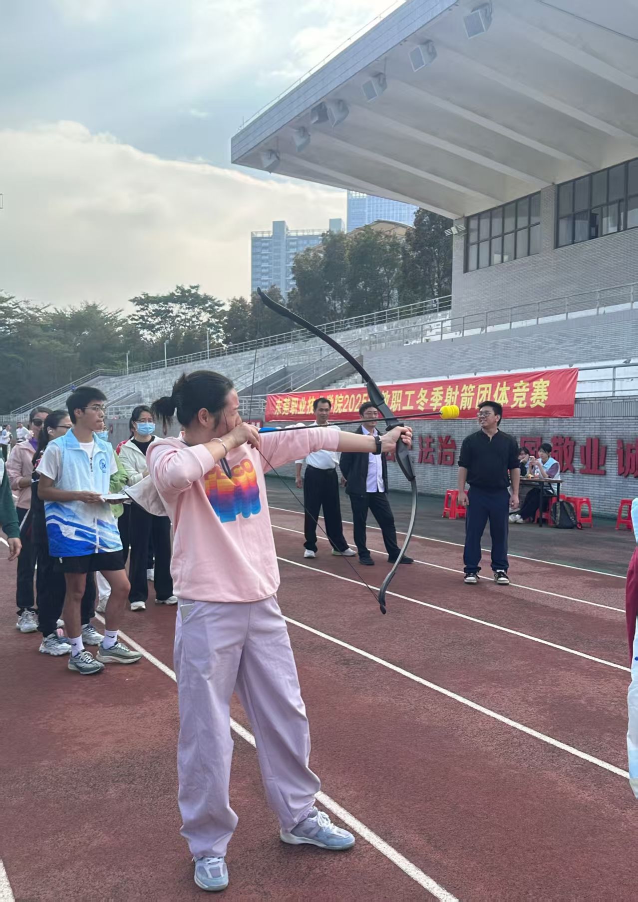 2025年12月19日下午,东莞职业技术学院首届教职工冬季射箭团体竞赛在学校田径场顺利举办。